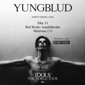 YUNGBLUD brings the IDOLS world tour to Red Rocks with Return To Dust. Expect a loud, cathartic rock show with big hooks, punk attitude, and a crowd that feeds off the chaos.
